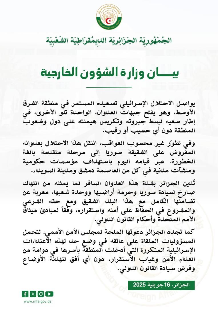 The Algerian Government has been following with great astonishment the recent developments in French communication regarding the visa issue in general and the exemption of diplomatic and service passports from this procedure in particular.Indeed, the Algerian Government has noticed that French communication on this issue now seems to follow a strange and questionable practice of deliberately leaking information to carefully selected media outlets by the services of the French Ministry of Interior and the General Directorate of the French Police. French decisions are now being announced through this unconventional channel, showing complete disregard for established diplomatic practices and entirely violating the provisions of the 2013 Algerian-French Agreement that establishes visa exemptions for diplomatic and service passport holders. In fact, to date, and in clear violation of Article 8 of this Agreement, Algeria has received no official French notification through the only legitimate channel for state relations—the diplomatic channel. The Chargé d'affaires of the French Embassy in Algiers, who has been summoned four times to the Ministry of Foreign Affairs on this matter, has claimed that he has received no instructions from the French Foreign Ministry. Similarly, to date, he has been unable to respond to Algeria’s formal requests for clarification on this matter. The Algerian Government wishes to formally note that France bears full and complete responsibility for the initial violations of the 2013 Agreement on visa exemptions for diplomatic and service passport holders. As soon as they occurred, these violations were addressed in an official statement from the Algerian authorities deploring them and holding the French party to account for its responsibilities in this matter. Building on this reminder, the Algerian Government rejects, as fundamentally inaccurate and untrue, the French allegation that Algeria was the first to breach its obligations under the 2013 Agreement. Beyond these necessary clarifications, the Algerian Government “takes this opportunity to point out that regarding visa exemptions for diplomatic and service passport holders, Algeria has never been the requesting party. When visas were introduced in 1986 for nationals of both countries, France initiated the proposal to exempt diplomatic passport holders from this requirement. Algeria had then opposed it with a frank and unequivocal refusal. Much later, during the 1990s, the French party renewed this same proposal three times, each time meeting with the same systematic refusal. It was only in 2007, when the French party again pressed on this same subject, that the Algerian party finally agreed to conclude a bilateral agreement on visa exemptions for diplomatic passport holders. And it was still at France’s initiative that a new Agreement, concluded in 2013, extended the exemption to service passport holders and abrogated the limited 2007 Agreement. In total, it appears in practice that the French Government is leaning towards freezing or suspending the 2013 Agreement, while carefully avoiding assuming the responsibilities and consequences, in disregard of the relevant provisions of said Agreement. Today, as in the past, Algeria has no particular interest in, nor any significant attachment to, this Agreement. It duly takes note of what appears to be a de facto suspension of the 2013 Agreement without France’s respect for the required procedures. It draws all the consequences and will respond with a strict application of reciprocity to the exact measure of the French party’s failure to honor its obligations and commitments.