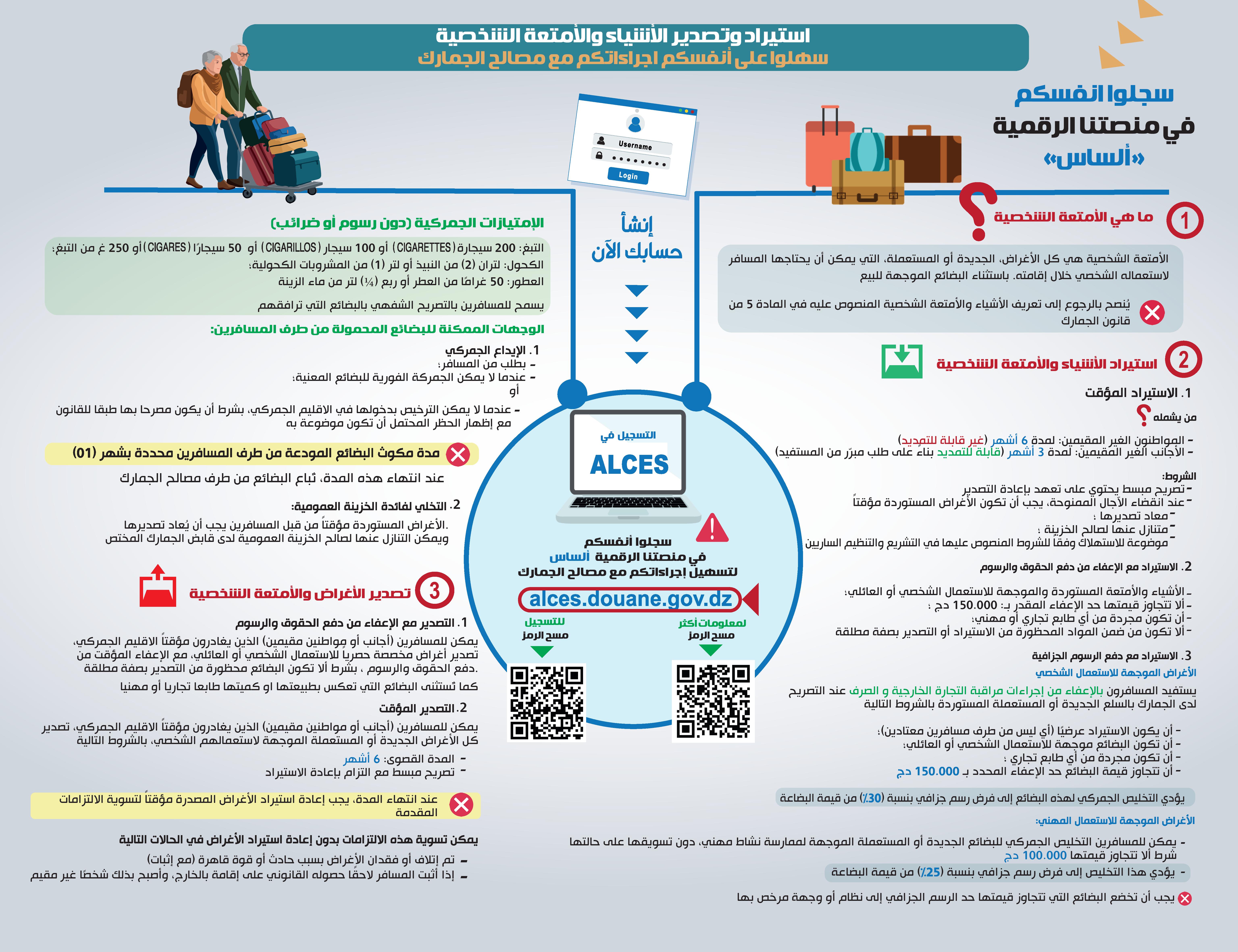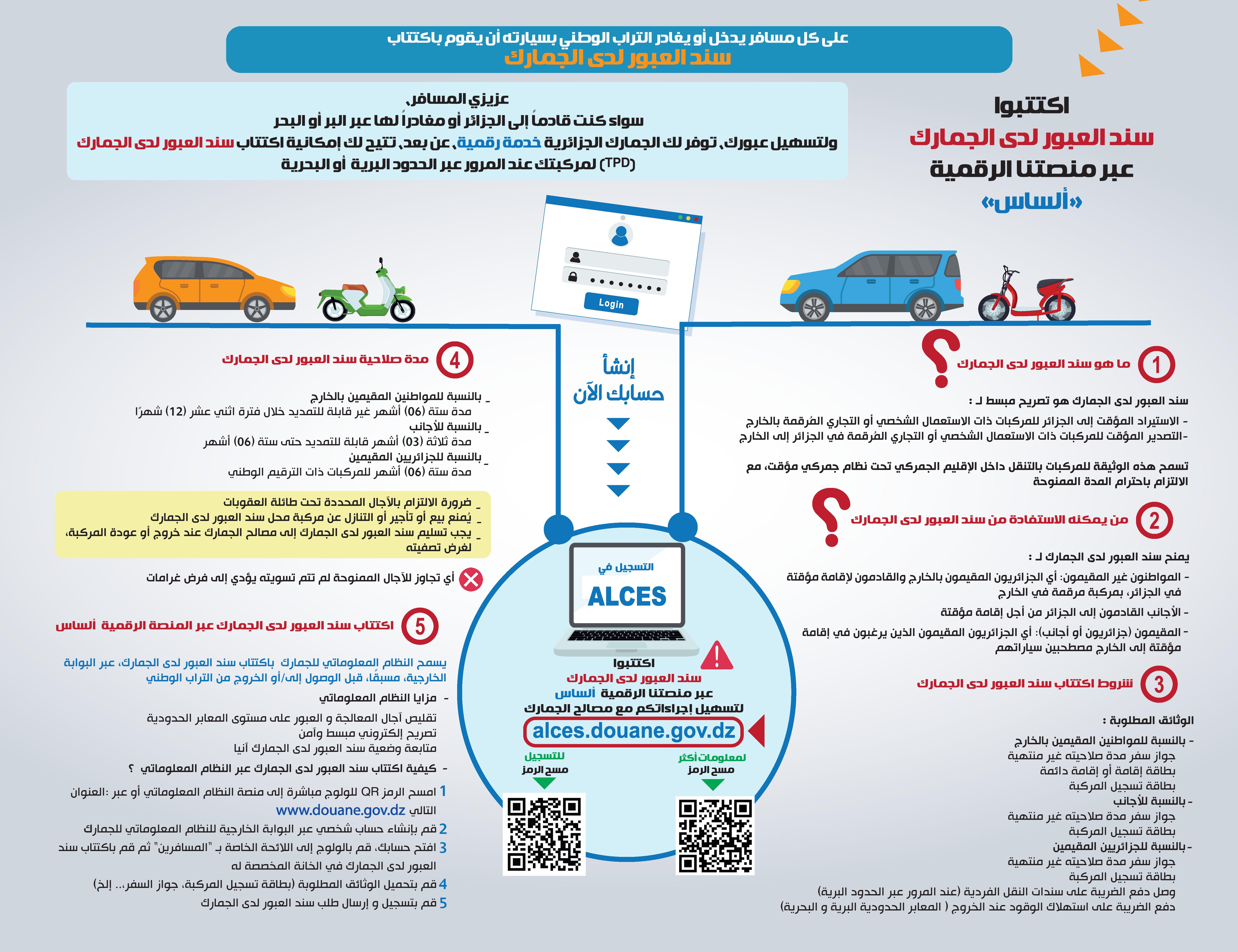 وجاء في البيان: "تنفيذا للتعليمات السامية للسيد رئيس الجمهورية وحرصه التام على التكفل بانشغالات أفراد الجالية الوطنية بالخارج وبهدف تسهيل إجراءات دخولهم إلى أرض الوطن وعودتهم إلى مقرات إقامتهم الاعتيادية, تنهي وزارة الشؤون الخارجية إلى علم مواطنينا المقيمين بالخارج وحاملي جوازات سفر أجنبية سارية الصلاحية انه بإمكانهم بصفة استثنائية, وإلى غاية 31 ديسمبر 2025، الدخول والخروج من التراب الوطني دون الحصول المسبق على تأشيرة، مع التقيد باستعمال نفس الوثائق عند الدخول والخروج وفق إحدى الحالتين" التاليتين. وتتعلق الحالتين, حسب البيان, ب"تقديم جواز سفر أجنبي ساري الصلاحية على أن يكون مرفوقا ببطاقة التعريف الوطنية البيومترية الالكترونية حتى و ان كانت منتهية الصلاحية" و "تقديم جواز سفر أجنبي ساري الصلاحية على أن يكون مرفوقا بجواز سفر جزائري بيومتري حتى و ان كان منتهي الصلاحية". **************************************************************