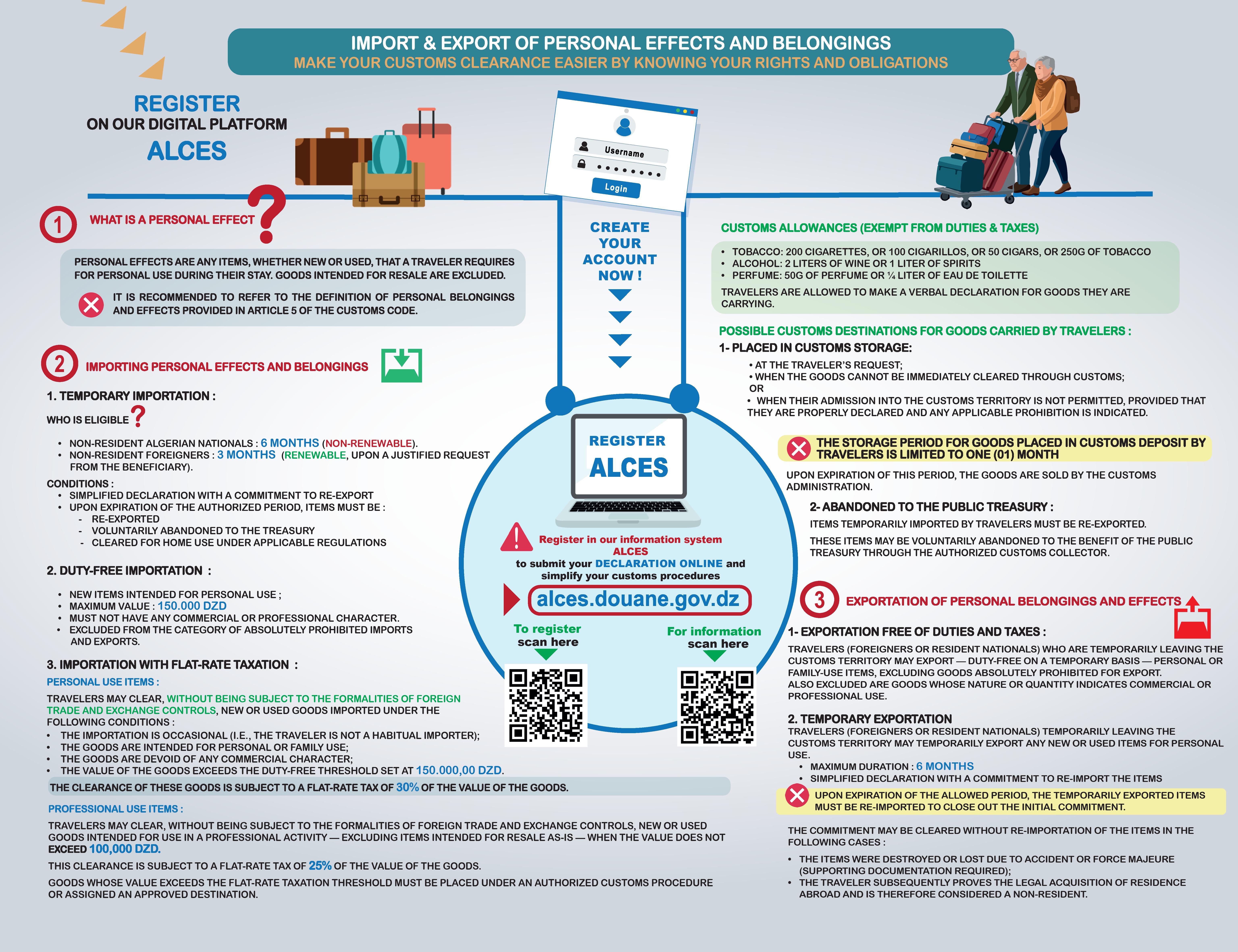 وجاء في البيان: "تنفيذا للتعليمات السامية للسيد رئيس الجمهورية وحرصه التام على التكفل بانشغالات أفراد الجالية الوطنية بالخارج وبهدف تسهيل إجراءات دخولهم إلى أرض الوطن وعودتهم إلى مقرات إقامتهم الاعتيادية, تنهي وزارة الشؤون الخارجية إلى علم مواطنينا المقيمين بالخارج وحاملي جوازات سفر أجنبية سارية الصلاحية انه بإمكانهم بصفة استثنائية, وإلى غاية 31 ديسمبر 2025، الدخول والخروج من التراب الوطني دون الحصول المسبق على تأشيرة، مع التقيد باستعمال نفس الوثائق عند الدخول والخروج وفق إحدى الحالتين" التاليتين. وتتعلق الحالتين, حسب البيان, ب"تقديم جواز سفر أجنبي ساري الصلاحية على أن يكون مرفوقا ببطاقة التعريف الوطنية البيومترية الالكترونية حتى و ان كانت منتهية الصلاحية" و "تقديم جواز سفر أجنبي ساري الصلاحية على أن يكون مرفوقا بجواز سفر جزائري بيومتري حتى و ان كان منتهي الصلاحية". **************************************************************